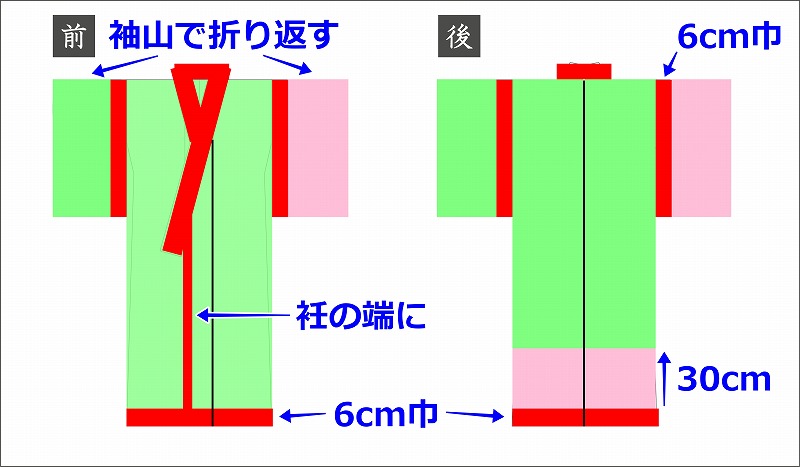 同じようにサリー生地の端を衿と袖付に配置しました。