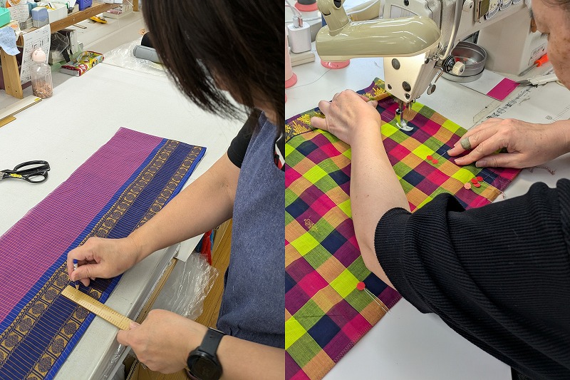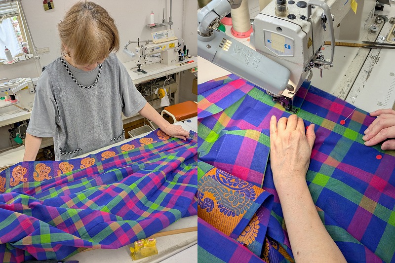 別件の用事で訪ねたとき、ちょうどサリー浴衣のお仕立て中でしたので作業の様子を撮影させてもらいました。